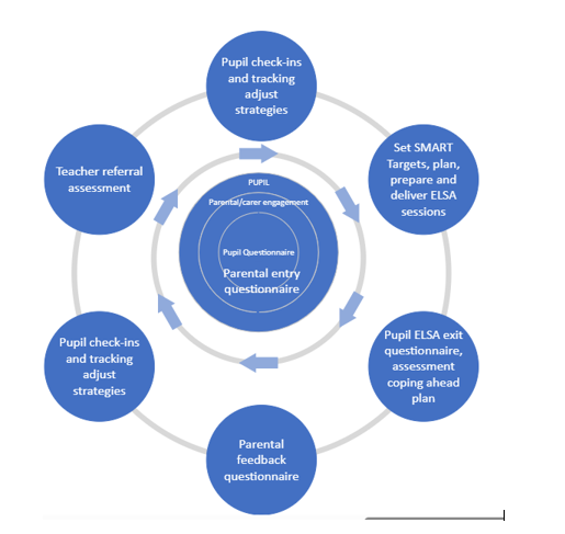 For pupils receiving support, parents will receive information about the ELSA provision, be invited to complete an ELSA entry questionnaire and will then be contacted with your child's SMART targets. During the process, you will be encouraged to discuss the programme and resources that you can use to support at home. A parental questionnaire will be sent on completion of the support.